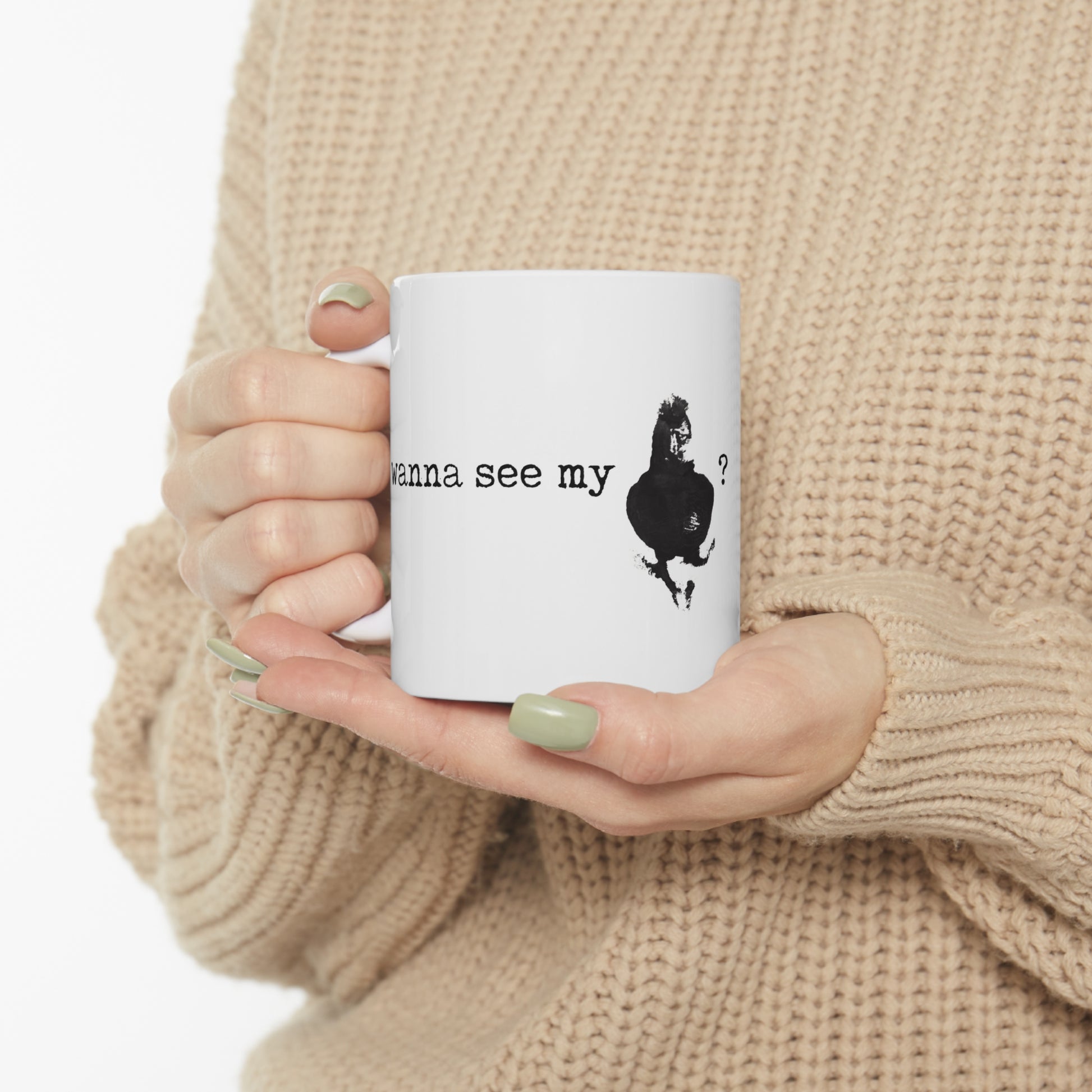 Sip your favorite brew in style with this unique coffee mug featuring a custom cheeky art print, adding a touch of personal flair to your morning routine
